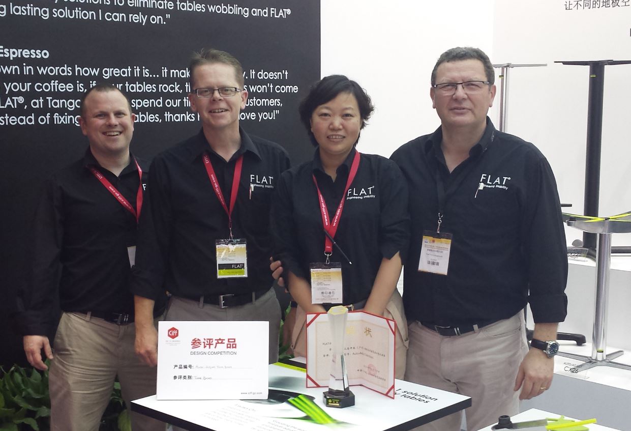 Andy O’Donnell (FLAT’s Global Marketing Manager) commented – “We’re delighted to have received such a prestigious and internationally renowned award here at CIFF. It’s great that industry leaders recognise our technology as being a ‘must have’ due to the functional and profitable benefits associated with our products! We have introduced 9 new products in the last 8 months including our first 2-pronged and decorative bases which we unveiled at the show. It’s fantastic to have the hard work recognised.”